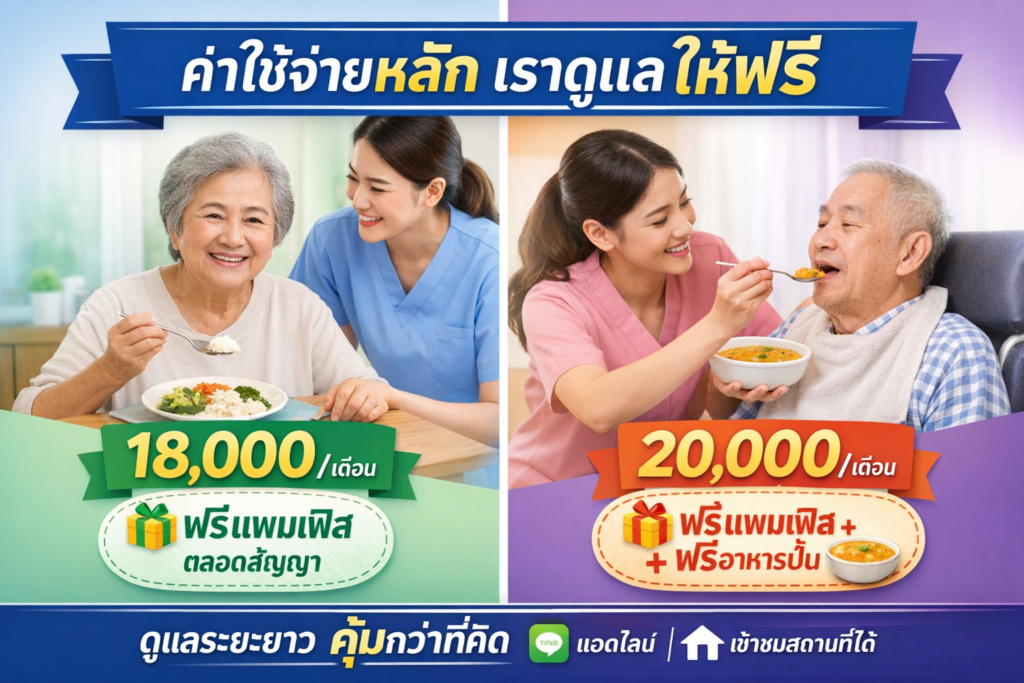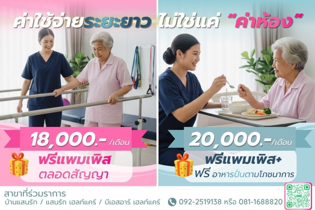 - รวมค่าอาหารมื้อหลัก 3 มื้อ อาหารว่าง สะอาดถูกสุขลักษณะ และเหมาะสมกับผู้สูงอายุและผู้ป่วยระยะพักฟื้น